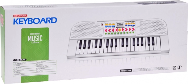 Het keyboard heeft 8 ritmes en geluiden van wals tot samba, 8 knoppen om van instrumenten te veranderen en de DEMO-functie waarmee kinderen kennis kunnen maken met de mogelijkheden van het apparaat.