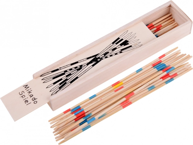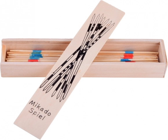 Geniet van tijdloos plezier met houten mikado. Verspreid de bundel stokjes op tafel en de spelers nemen om de beurt voorzichtig een stokje weg zonder dat er een ander beweegt. De verschillende gekleurde strepen bepalen de puntenwaarde – wie de hoogste totaalscore behaalt, wint.