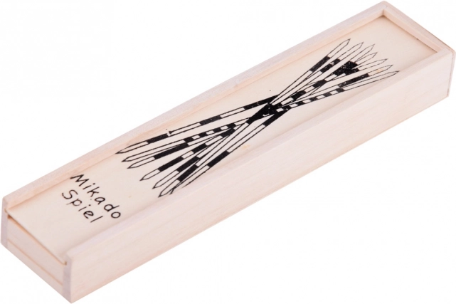 Klassiek mikado voor 2 of meer spelers, gemaakt van hoogwaardig hout. 31 spitse stokjes met gekleurde strepen en puntenwaarden testen geduld, concentratie en fijne motoriek. Ideaal als familiespel en als cadeau in een elegant houten doosje.