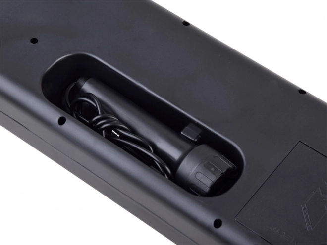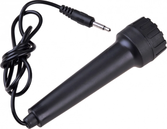 In de verpakking zit een bedrade microfoon waarmee kinderen kunnen meezingen en hun zelfvertrouwen ontwikkelen.