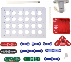 De basis met een zeshoekig raster, kleurrijke onderdelen en overzichtelijke bedrading maken de eerste elektronica-experimenten eenvoudig, zelfs voor jongere kinderen.