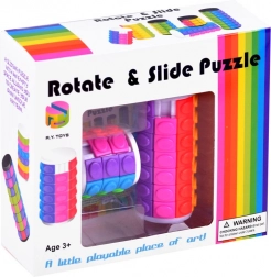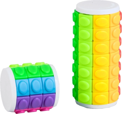 Deze originele breinbreker heeft de vorm van een cilinder met draaibare ringen en één vrije positie, waardoor je de elementen naar wens kunt verplaatsen. Het doel is om de niveaus in dezelfde kleuren te rangschikken of een eigen patroon te creëren. De verpakking bevat twee mokken/puzzels in verschillende formaten en met verschillende moeilijkheden: een kleinere met 3 niveaus en een grotere met 7 niveaus.