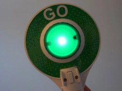 Eén kant groen GO, de andere rood STOP – ideaal om basisverkeersinstructies spelenderwijs te leren.