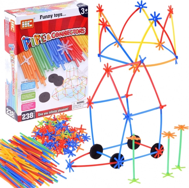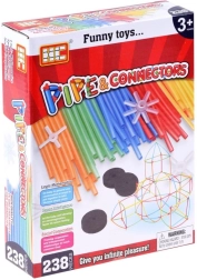 Ontdek eindeloze bouwmogelijkheden met deze set van buisjes en koppelingen met 238 delen. Dankzij de flexibele kunststof rietjes, meerarmige connectoren en foam wieltjes bouwen kinderen eenvoudig 3D-constructies, geometrische vormen, huizen of raketten. Dit creatieve spel stimuleert fijne motoriek, logisch denken en fantasie en houdt kinderen urenlang bezig.