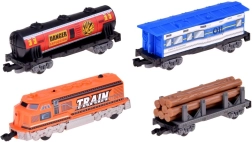 - Locomotief, tankwagon, personenwagon, houtwagon (8 stammen), werkvoertuig