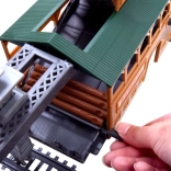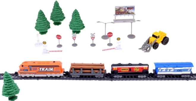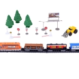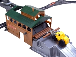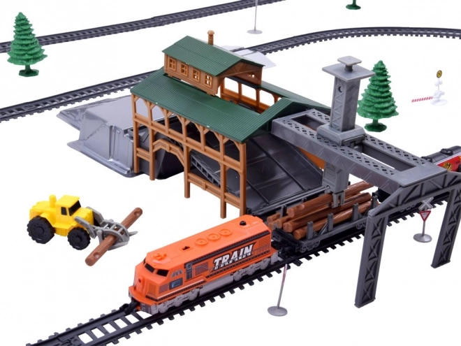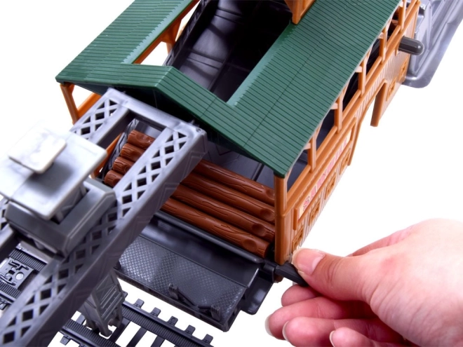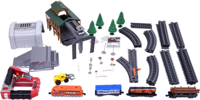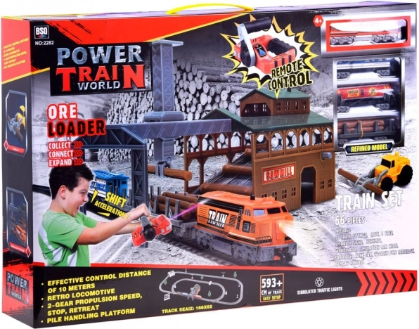 Deze plastic treinbaanset biedt kinderen uren creatief speelplezier. De set bevat een moderne locomotief met de mogelijkheid om verschillende wagons aan te koppelen, realistische accessoires en vooral een laadstation met beweegbare delen voor het hanteren van stammen. De bediening verloopt via een compacte IR-controller met een hendel voor richting- en snelheidskeuze.