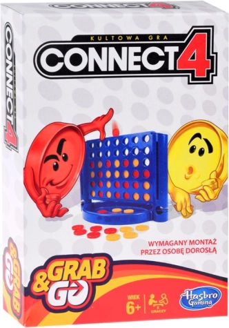 Pocketversie van de populaire game CONNECT 4 voor twee spelers brengt slimme fun voor onderweg. Laat fiches in het raster vallen en probeer vier op een rij te maken vóór je tegenstander – verticaal, horizontaal of diagonaal. Dankzij de inklaptablet en de opbergruimte in het bord ruim je alle onderdelen makkelijk op. Stimuleert logisch denken, strategie, concentratie en behendigheid.