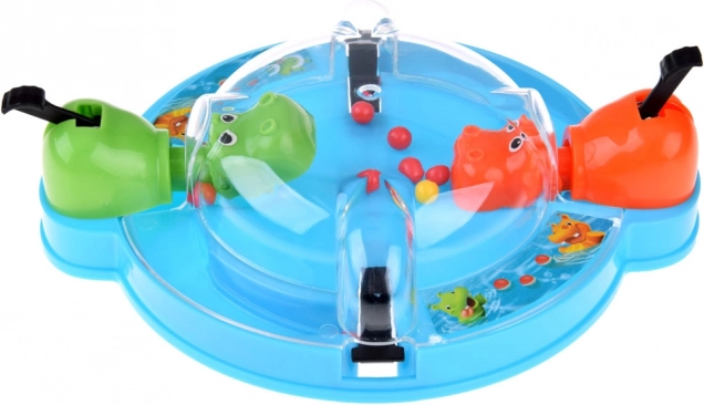 Hongerige nijlpaarden is een vaardigheidsspel waarbij spelers met hendels de nijlpaarden bedienen en proberen zoveel mogelijk kleine knikkers op te slokken. Het spel is ontworpen voor kinderen, maar het hele gezin zal er plezier aan beleven. Het is niet alleen leuk, maar leert ook kleuren herkennen en bevordert de oog-handcoördinatie.