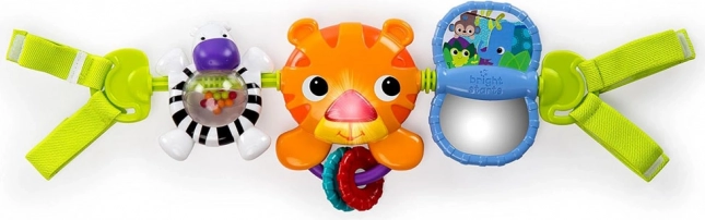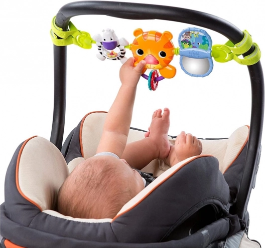 Met behulp van stoffen banden kan het speelgoed eenvoudig aan de kinderwagen, autostoeltje of wieg worden bevestigd, voor plezier zowel thuis als onderweg.