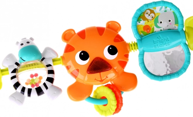 Ontworpen met prachtige kleuren en texturen, bevat dit hangende speelgoed verschillende thema's waaronder een tijger, zebra en een spiegel, wat de spelmogelijkheden van je kleine ontdekker vergroot. Door op de neus van de tijger te drukken, gaat er een lichtje branden en speelt er een melodie af, wat de zintuigen stimuleert en de fijne motoriek bevordert.
