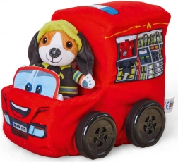 De brandweerwagen is ook uitgerust met geluidseffecten. Bij het indrukken van de pluchen hond hoor je motor- en sirenegeluiden. De afstandsbediening maakt het mogelijk de claxon te activeren. De pluchen hond kan worden losgemaakt, wat kinderen in staat stelt verschillende verhalen te verzinnen.