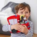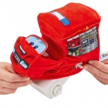 Het chassis van deze brandweerwagen is gemaakt van plastic, terwijl de carrosserie vanzacht pluche is, wat verschillende voordelen biedt: