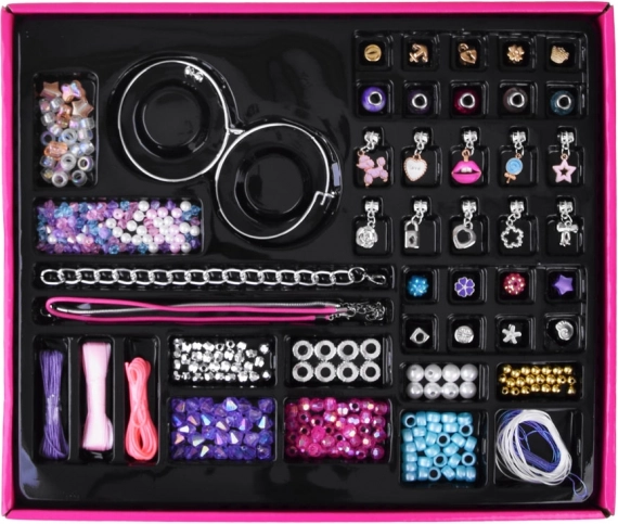 Inclusief verschillende kralen, bedels en kettingen om je modieuze accessoires te personaliseren, zodat elk stuk uniek is.