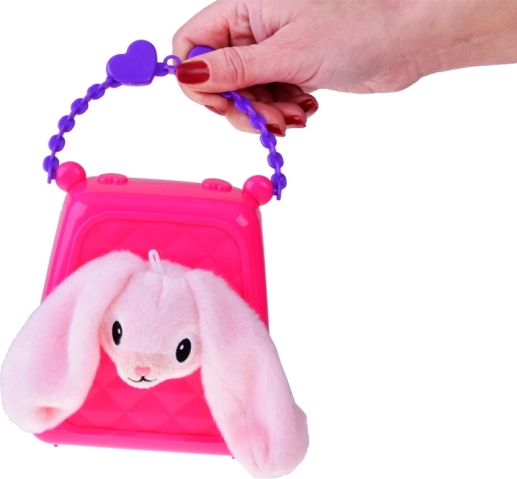 Geweldige handtas is gemaakt van plastic in vriendelijke kleuren en versierd met driedimensionale decoratie en hartvormige handgreep. Dankzij het hartvormige gat kijkt het hoofdje van het konijntje uit de tas, wat een zeer charmante indruk maakt tijdens een wandeling. De handtas heeft ook hartvormige drukknopen die de gehele schattige uitstraling accentueren. Perfecte accessoire voor elke outfit.