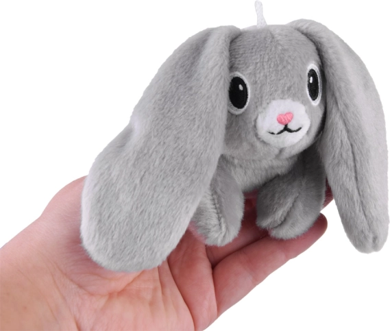Pluche konijntje is gemaakt van zacht, aangenaam aanvoelend materiaal. Zijn ogen, neus en grappige mondje zijn geborduurd, wat veiligheid garandeert, zelfs voor jongere kinderen. Ook zijn grote, hangende oren en kleine staart vallen op. Het konijntje kan zelfstandig staan en heeft een kleine lus op zijn hoofd, waardoor het een schattige sleutelhanger kan worden voor een rugzak of handtas.