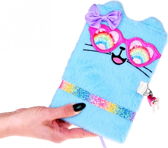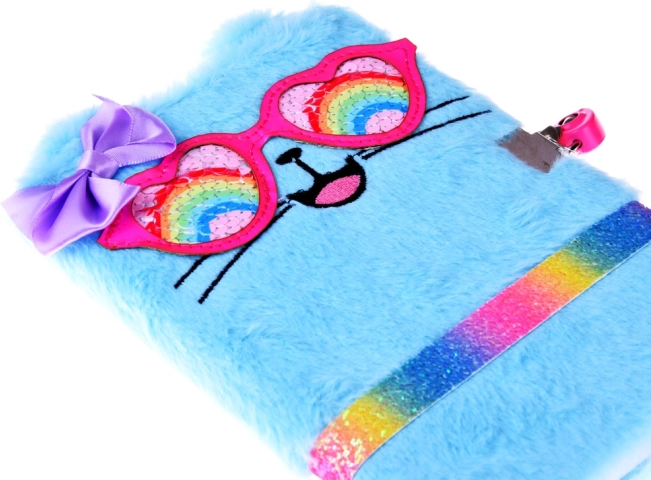 Dit betoverende pluchen dagboek is ideaal voor elk meisje dat haar geheimen veilig wil bewaren dankzij een klein roze slot. De zachte en pluizige blauwe omslag ziet er niet alleen aantrekkelijk uit, maar voelt ook prettig aan, en een heldere regenboogstreep voegt nog meer stijl toe.