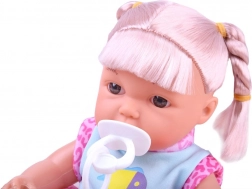 De pop kan verschillende geluiden maken: lachen, mama, brabbelen, baba, smakken, huilen, vreugde, niezen en boeren.