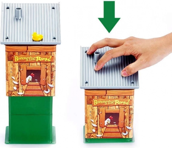 Voor de start van het potje druk je het dak in. Tijdens het spel kan het op elk moment opspringen – de speler die aan de beurt is neemt dan kuikentjes terug. Spanning en gelach verzekerd.