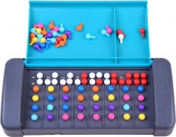Eén speler maakt een geheime code, de ander heeft 8 pogingen om die te ontcijferen. Snelle rondes en duidelijke beoordeling met kleine markeringen.