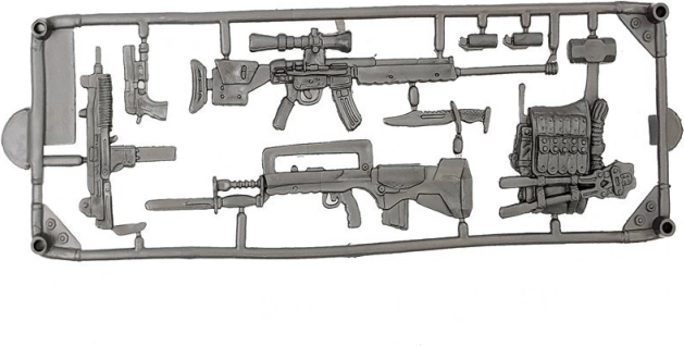 De set met kunststof wapens en uitrusting breidt speelscenario’s uit en ondersteunt creatieve strategie bij elke missie.