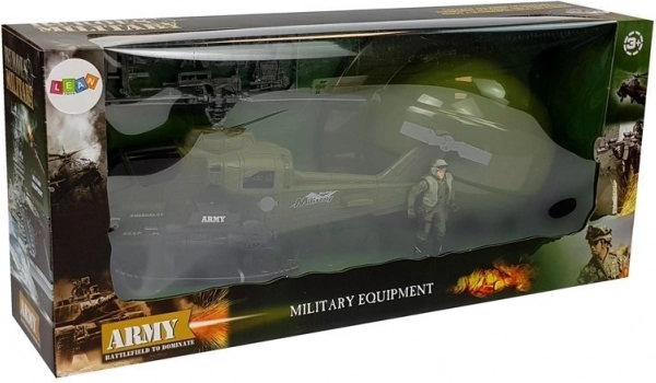 Inhoud van de set: helikopter, helm, soldatenfiguur en een set kunststof wapens. Het spel ontwikkelt coördinatie, verbeeldingskracht en strategisch denken. Het product voldoet aan de normen CE en EN 71, zodat kinderen veilig van hun tactische speelplezier kunnen genieten.