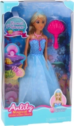 Betoverende ANLILY zeemeerminprinses pop neemt kinderen mee naar een wereld van onderwateravonturen. Ze heeft lang goud haar, een elegante blauwe jurk met zeethema en een kroontje. Inclusief borstel om te kammen voor creatief spel en het stimuleren van de fantasie. Ideaal voor kinderen vanaf 3 jaar, met CE-certificering en conform norm EN71.