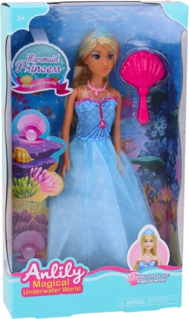 Ontdek de magie van het onderwaterkoninkrijk met de ANLILY zeemeerminprinses. Haar glinsterende blauwe jurk met zeemeerminmotief en het fijne kroontje maken haar een echte prinses. Het lange, gouden haar kan worden gekamd en gestyled met de meegeleverde borstel, wat creativiteit en rollenspel bevordert.