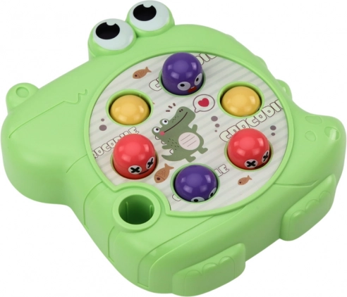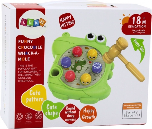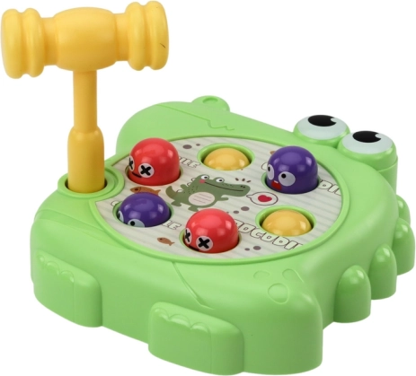 Dit spel bestaat uit het met een hamertje slaan op opduikende figuurtjes die op verschillende delen van het krokodillenlichaam zijn geplaatst. Deze dynamische activiteit ontwikkelt precisie en bewegingscoördinatie, en leert kinderen ook concentratie en reactiesnelheid.