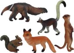 Betreed de wereld van de wilde natuur met deze set van 5 realistische dierenfiguren. Bevat een eekhoorn, stokstaartje, miereneter, vos en maki, perfect gemaakt voor de kinderfantasie.