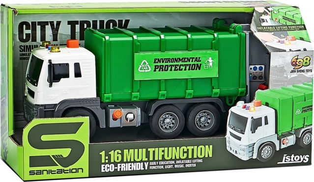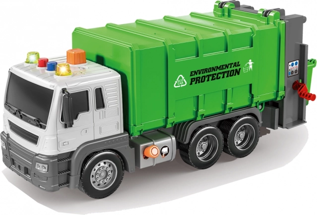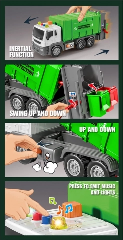 Met de groene vuilniswagen kunnen kinderen spelen alsof ze verantwoordelijke burgers zijn die afval scheiden. Dit realistische model biedt geweldige geluidseffecten die de verbeelding en interesse voor spel van kinderen stimuleren.