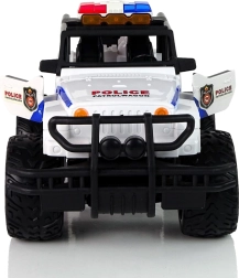 Speelgoed met een karakteristiek zwart-wit design, grote wielen en politie-markeringen voor een perfecte nabootsing van echte politieactie.