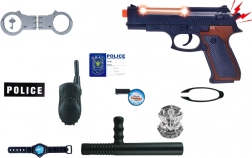 De set bevat een pistool met licht- en geluidseffecten en een rijke selectie politieaccessoires zoals een badge, walkietalkie, knuppel of beschermend schild, wat bijdraagt aan realistischere ervaringen. De hoogwaardige uitvoering van duurzaam plastic garandeert dat alle elementen bestand zijn tegen langere en intensievere speelmomenten.