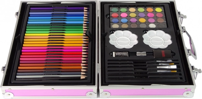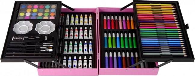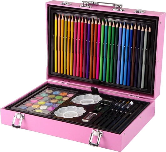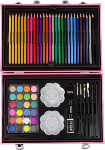 Deze uitgebreide creatieve set met 145 onderdelen maakt zowel jonge als oudere kunstenaars blij. Biedt een breed palet aan intense kleuren en meerdere technieken – van tekenen en inkleuren tot aquarelleren. Alles is veilig opgeborgen in het stevige roze koffertje met eenhoornthema, dat eenvoudig te sluiten en te dragen is.