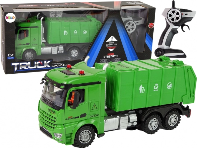 De groene op afstand bestuurbare vuilniswagen biedt realistisch speelplezier én leren. Dankzij de frequentie van 2,4 GHz, functionele licht- en geluidseffecten en openende deuren kunnen kinderen eenvoudig afvalscheiding naspelen. Ideaal speelgoed om fantasie en fijne motoriek te ontwikkelen, geschikt vanaf 6 jaar.