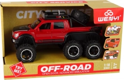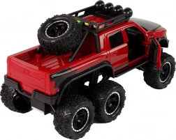 Ga op avontuur met de rode 6x6 terreinwagen op schaal 1:16. Dankzij de vliegwielaandrijving hoef je de wagen alleen maar een duwtje te geven en hij schiet meteen vooruit – zonder batterijen voor de aandrijving. Zes grote rubberen wielen bieden goede grip op diverse ondergronden en de duurzame kunststof carrosserie kan zelfs ruw terrein aan.