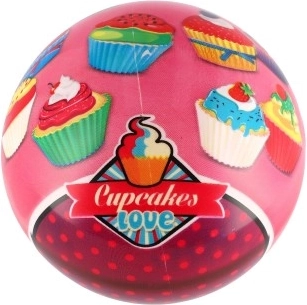 Deze kinderbal met vrolijke cupcake-motieven en de tekst “Cupcakes Love” brengt kleur en plezier in elk spel. Het lichte plastic materiaal voelt prettig aan en stuitert gemakkelijk, waardoor hij geschikt is voor beginnende sportertjes vanaf 3 jaar. Perfect voor op het strand, bij het water, in de tuin en op het speelplein.