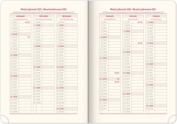 Binnenin vindt u maand- en jaarplanners, een overzicht van feestdagen, een uitgebreide lijst met Tsjechische namen en kaarten van Tsjechië en Slowakije. Dankzij de textielen bladwijzer en geperforeerde hoekjes vindt u snel de actuele pagina, en de royale notitieruimte zorgt ervoor dat u niets mist.