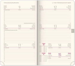 De elegante zakagenda Diamante 2025 in het rood biedt een praktische weekindeling met een Tsjechisch‑Slowaakse kalender en aanvullende talen. Ideaal voor dagelijks plannen onderweg – compact formaat, hoogwaardige afwerking en handige overzichten. Maand- en jaarplanners, kaarten van Tsjechië en Slowakije, een textiele bladwijzer en geperforeerde hoekjes zorgen voor makkelijke oriëntatie en organisatie.