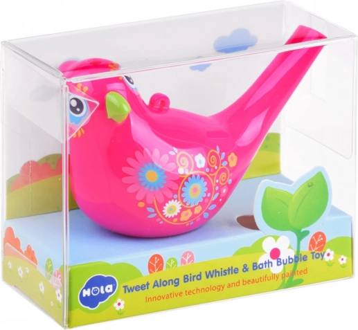 Deze plastic vogelfluit is gemaakt voor speels plezier thuis, buiten en in bad. Blaas en je hoort een krachtig en zuiver geluid. Vul via de opening op het kopje en de fluit begint te tsjilpen en de toonhoogte te variëren volgens de hoeveelheid water en hoe hard je blaast.