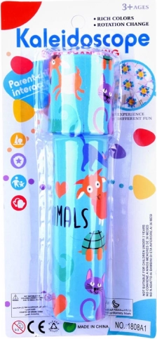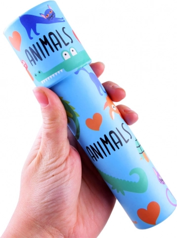 Vrolijke dierenillustraties en opvallende kleuren maken van de caleidoscoop een aantrekkelijke speelgoed voor kinderen.