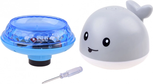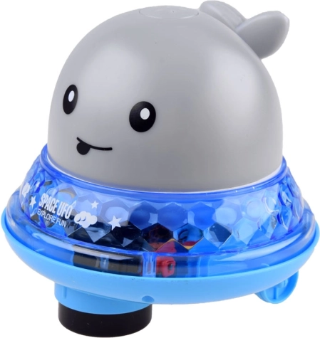 Een schattige waterwalvis maakt van elk bad een feestje. Zodra hij onderdompelt, spuit hij water als een mini-fontein en wordt begeleid door gekleurde LED-lichtjes. Plaats je hem op het platform, dan rijdt hij weg, beweegt hij op het ritme van vrolijke muziek en licht hij op – ideaal voor in bad, het zwembad of speelse momenten in de badkamer.