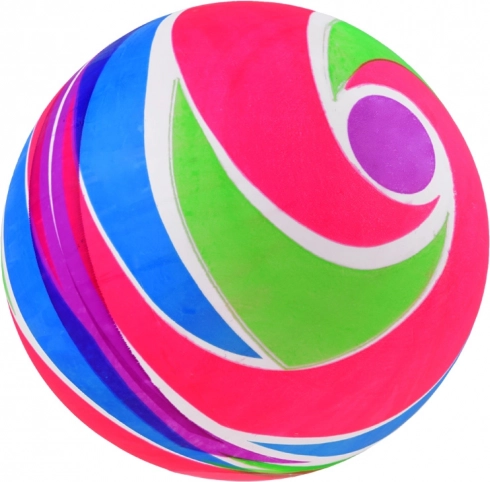 De bal heeft opvallende regenboogkleuren die zowel kinderen als volwassenen aanspreken.