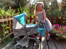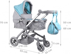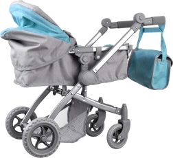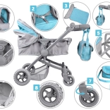 Stijlvolle en stabiele poppenwagen met 4-in-1-functie die eenvoudig verandert van een diepe gondel naar een sportwagen. Voorzien van een verstelbare duwbeugel (voor verschillende kindhoogtes), inklapbare kap, veiligheidsriemen, zwenkbare voorwielen voor makkelijk sturen en een ruime mand plus een afneembaar tasje voor accessoires. Het lichte frame zorgt voor prettig gebruik en een realistische speelervaring.