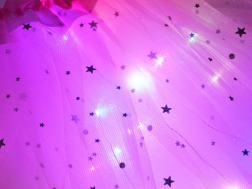 Luchtige tule met glitters en een elastische taille voor comfortabel dragen en eenvoudig aan- en uittrekken.