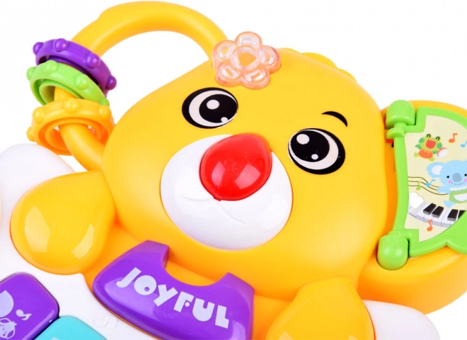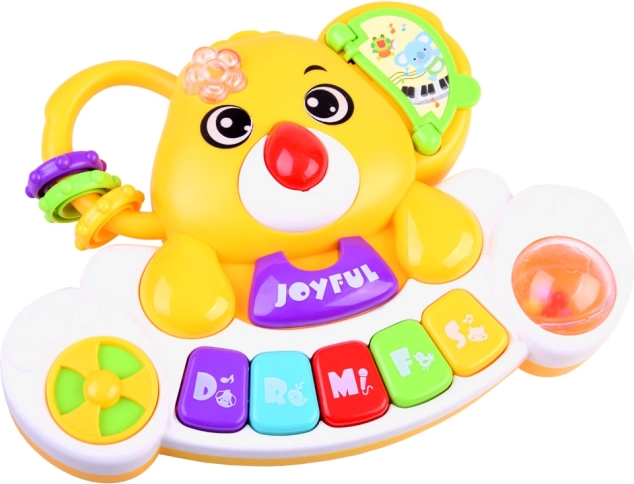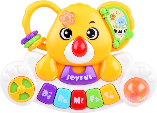 Dit kleurrijke interactieve pianootje combineert leren en plezier. Kinderen maken kennis met de basisreeks Do–So, luisteren naar vrolijke melodieën en authentieke dierengeluiden (hond, haan, paard, kat, olifant). Elke toetsaanslag gaat gepaard met een knipperend lampje dat van kleur verandert en het zicht stimuleert.