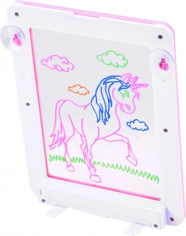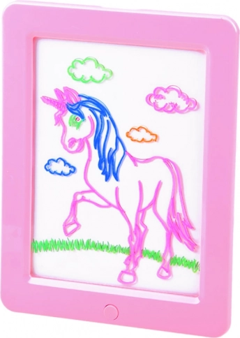 Creatieve verlichte tekentablet voor kinderen biedt neontekenen, de mogelijkheid om sjablonen over te trekken en een opvallende LED-achtergrondverlichting. Dankzij de 3D-bril komen de voltooide tekeningen tot leven in de ruimte, wat zorgt voor veel plezier en stimuleert verbeelding en fijne motoriek.