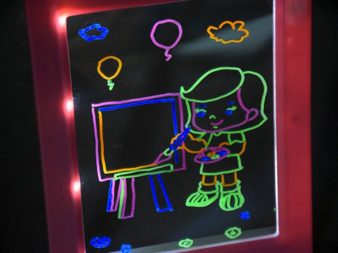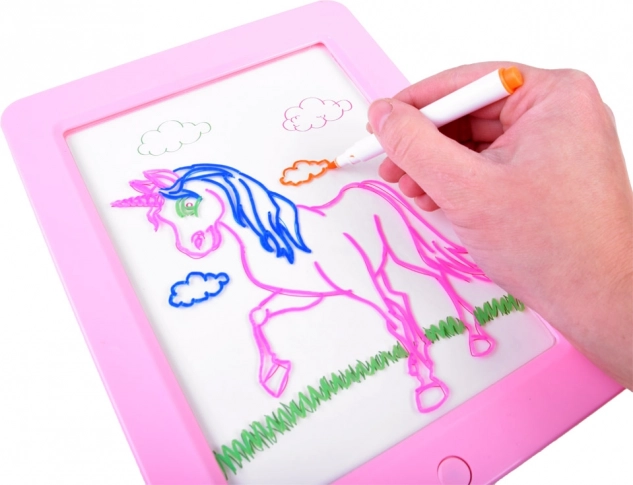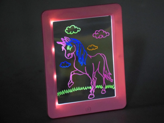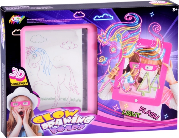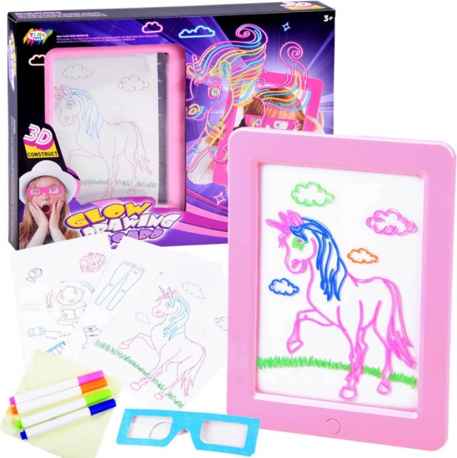 Verlichte tekentablet met 3D-bril en neonstiften. LED-licht, sjablonen en herhaald wissen voor eindeloos creatief plezier voor kinderen.