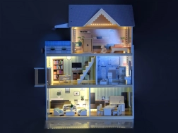 Het huis is zorgvuldig ontworpen met realistische graphics en houten meubels, wat een echt leven gevoel geeft.