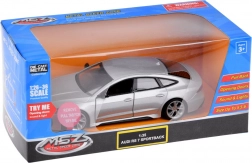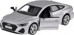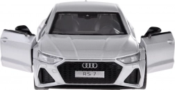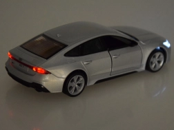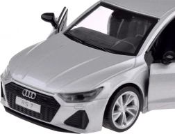 Het elegante zilveren model AUDI RS 7 Sportback is vervaardigd uit metaal met een kunststof chassis en valt op door de precieze detaillering. De openende deuren onthullen het interieur, terwijl voor- en achterlichten en authentieke geluiden zorgen voor veel plezier en realisme.