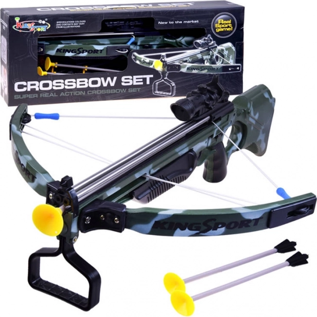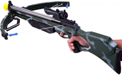 Deze realistisch vormgegeven kinderkruisboog biedt geweldig plezier voor jonge schutters. Dankzij het laser vizier is richten intuïtief en precies, terwijl de zuignappijlen voor veilig gebruik op gladde oppervlakken zorgen. De ergonomische kolf en praktische voetsteun maken het makkelijk opspannen van de pees.